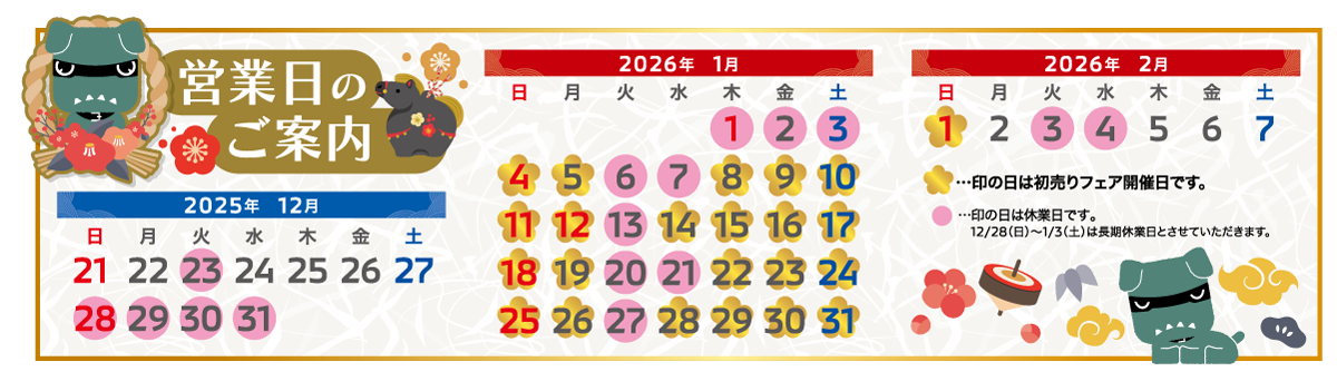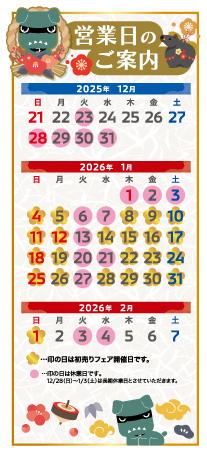 ご来店の際は、事前に各店舗の定休日をご確認いただけますようお願いいたします。